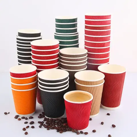 Giá rẻ dùng một lần cốc Cà Phê Cốc giấy 8oz / 12oz / 16oz gợn tường Cà Phê Trà cốc giấy